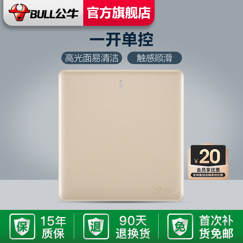 Bull Socket Flagship Switch Open Single Control Wall 86 Type With Fluorescent Single Open Switch Single Control Button G28 Gold