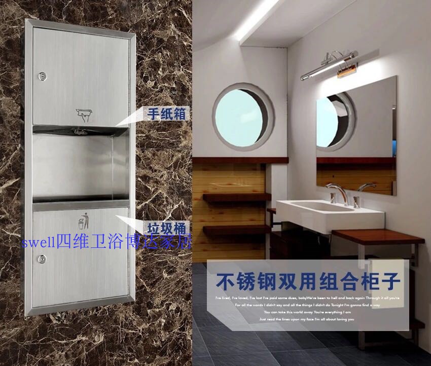 Jinhang bathroom tooling 304 stainless steel sand smooth surface two-in-one toilet paper box convex trash can A-700