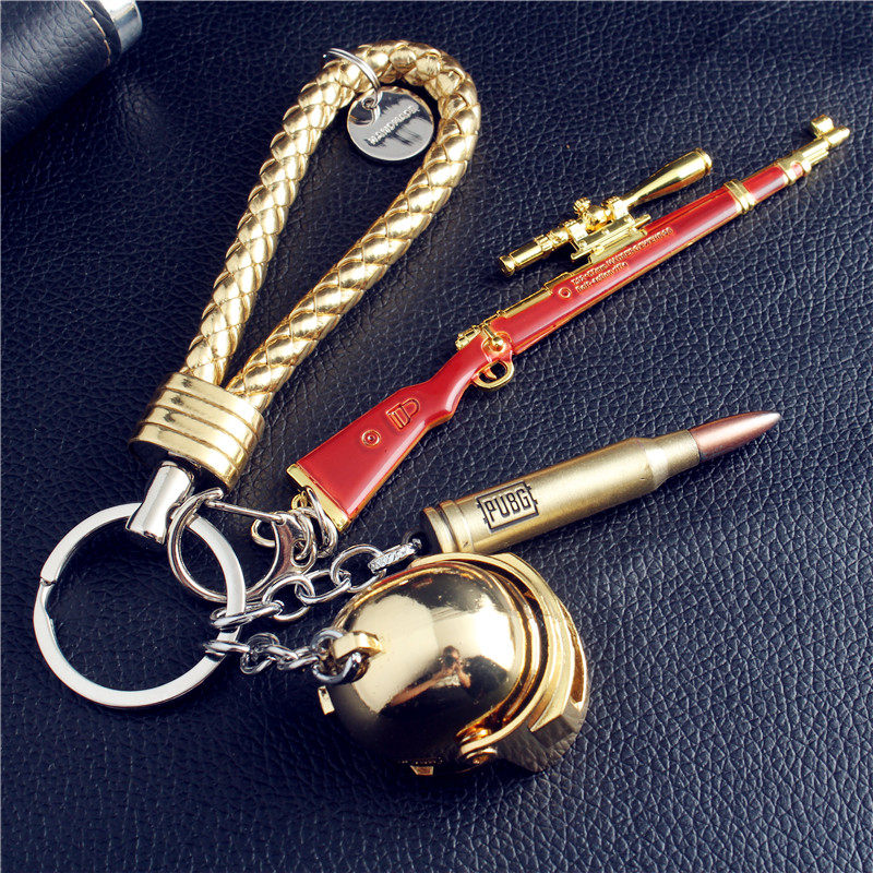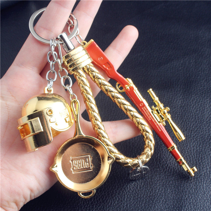 PlayerUnknown's Battlegrounds eating chicken gold suit key chain three-level head backpack armor pan 98K key chain pendant