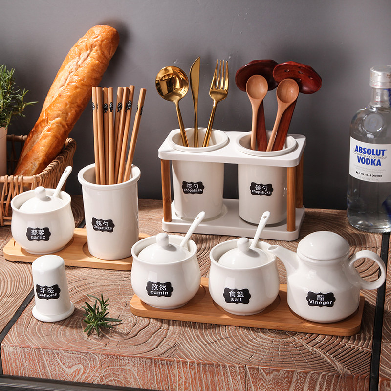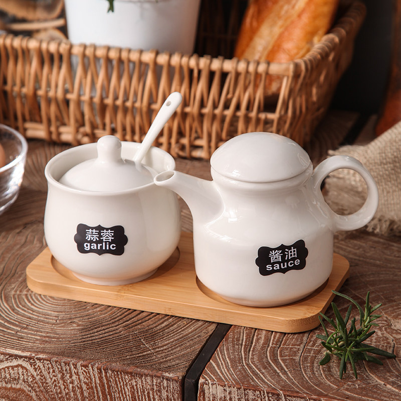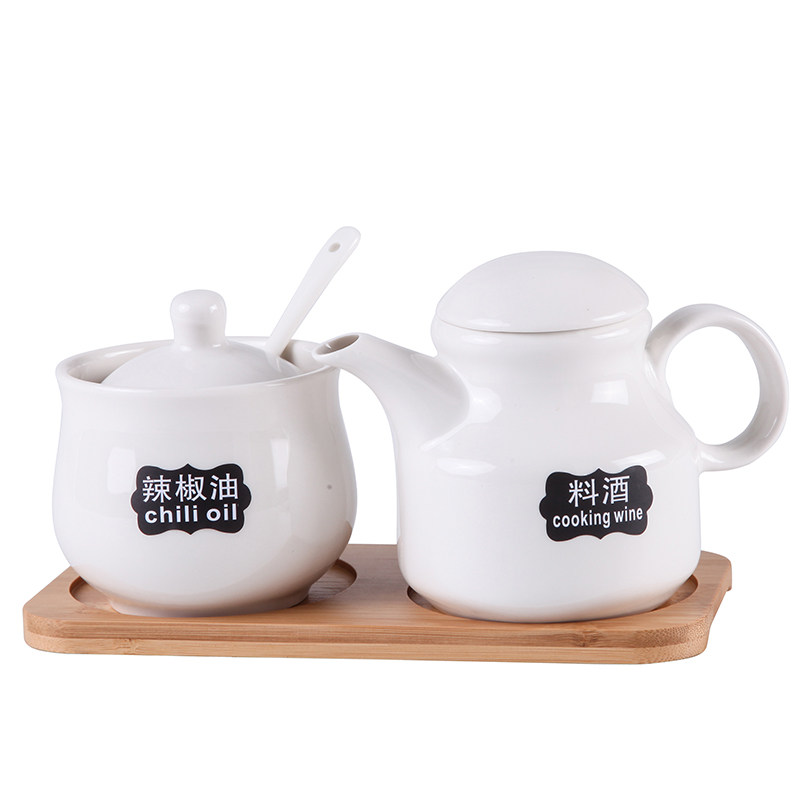Ceramic chili jar high temperature resistant oil splash chili oil ceramic vinegar pot sesame oil pot toothpick container double barrel drain chopsticks barrel