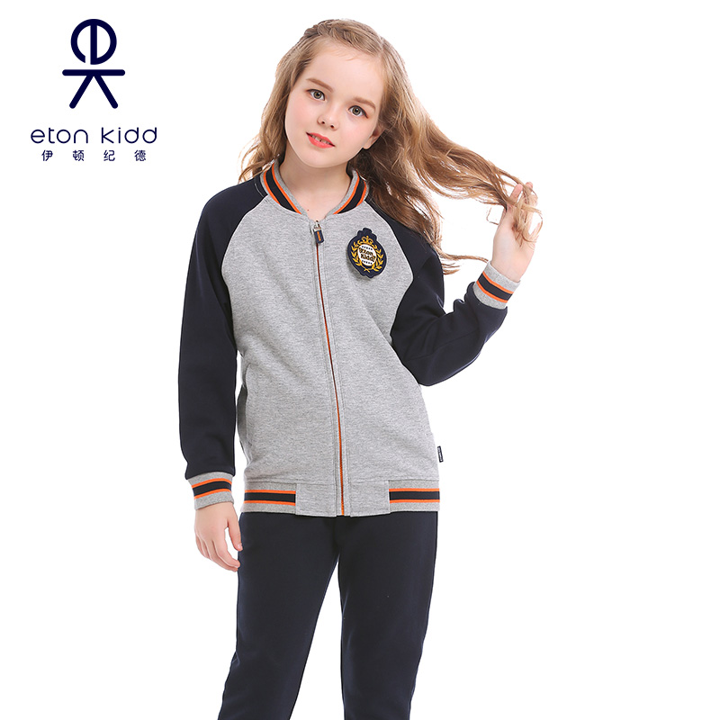 Eaton Guild primary and middle school students Campus clothes Tibetan green long pants light grey baseball jacket Sport sweatwear Spring and autumn