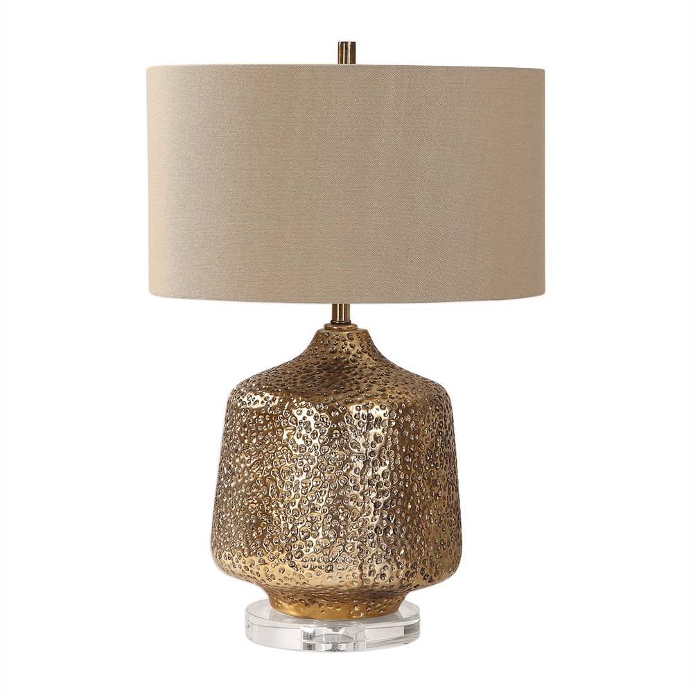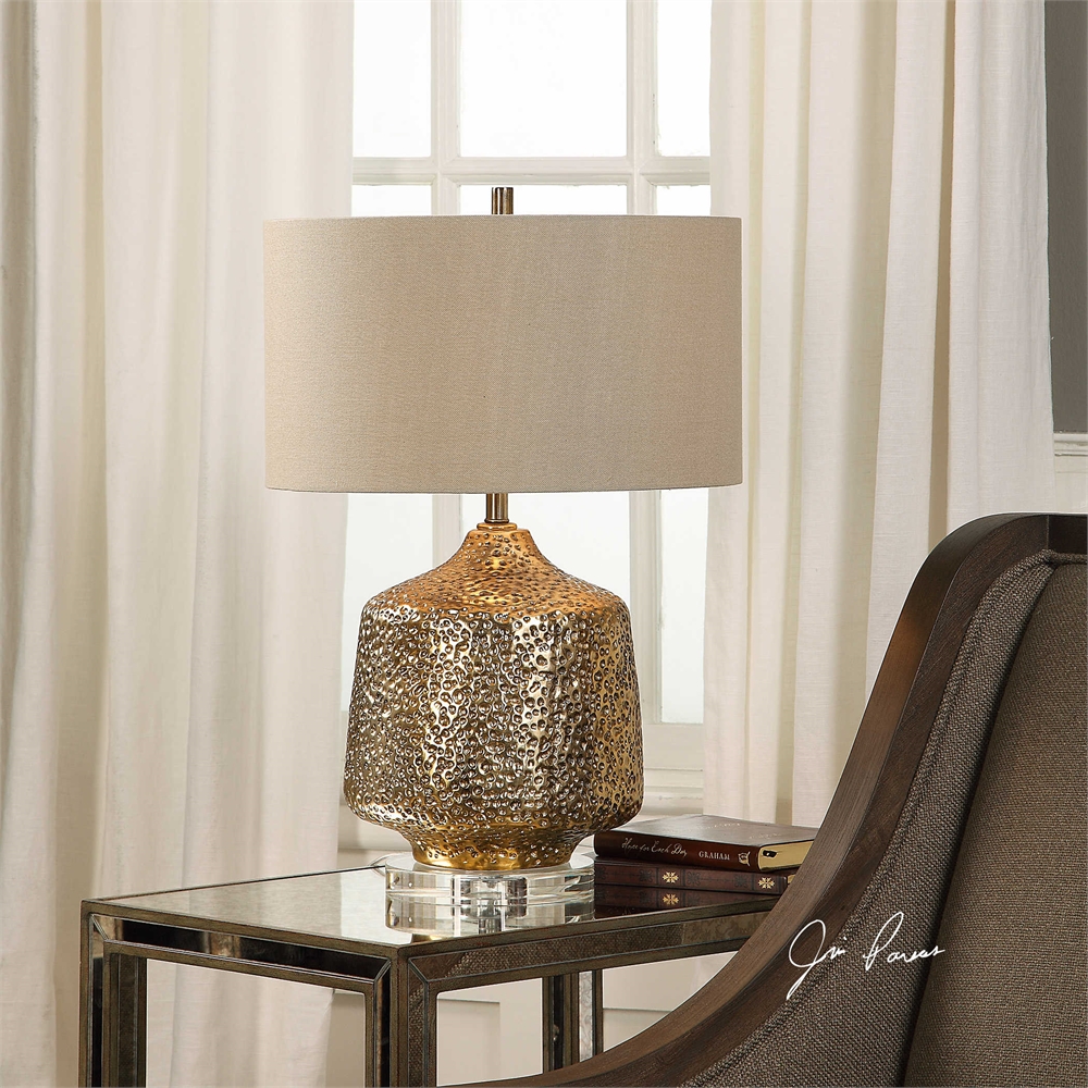 American simple table lamp American imported metal crystal gold glaze porous texture Study living room Villa creative lamp