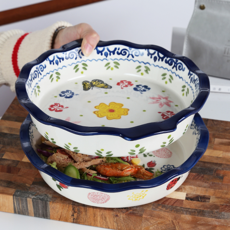 Hufu Outlet American 9 Inch Ceramic Pie Baking Tray Baking Mold Creative Eu Style Home Living Room Fruit Basin
