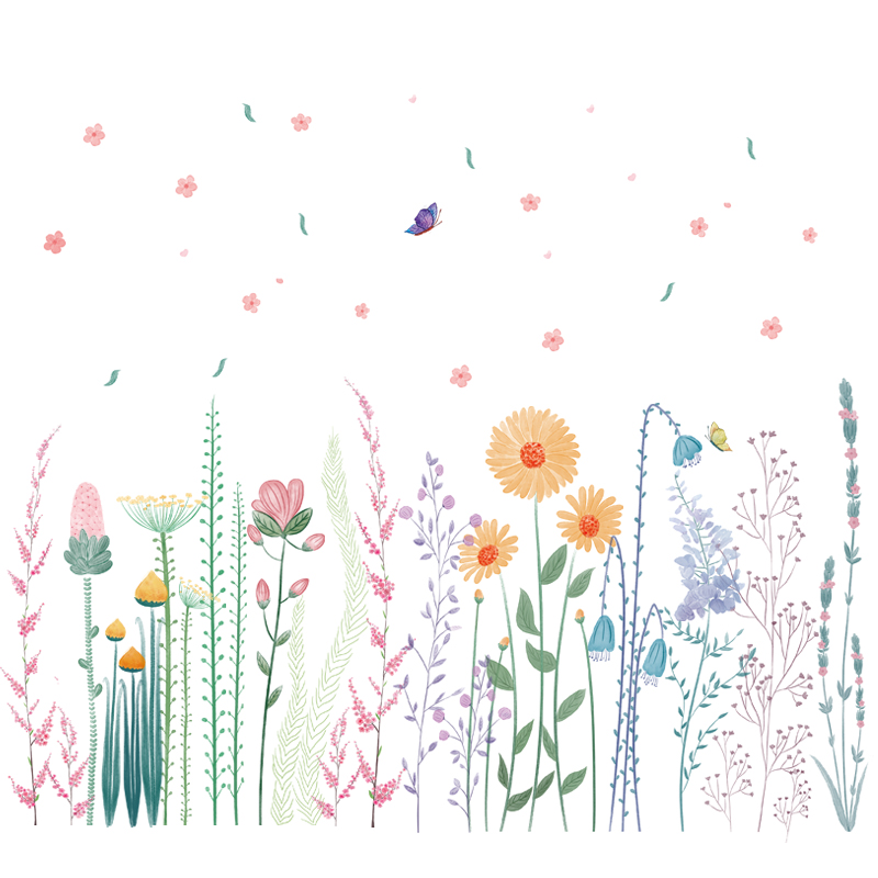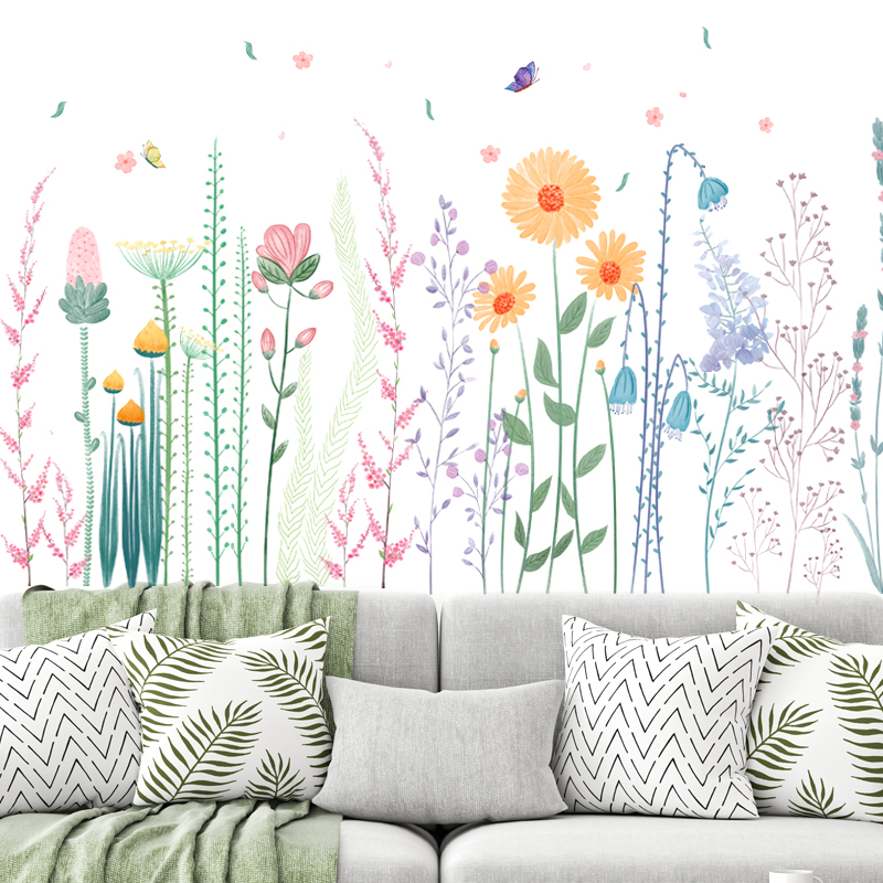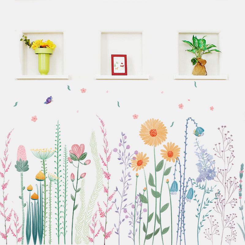 Wall Sticker Plant Flowers Fresh INS Skirting door Bedroom door Bedroom Guan Guan Wall Decoration Stickers Web Red Wallpaper