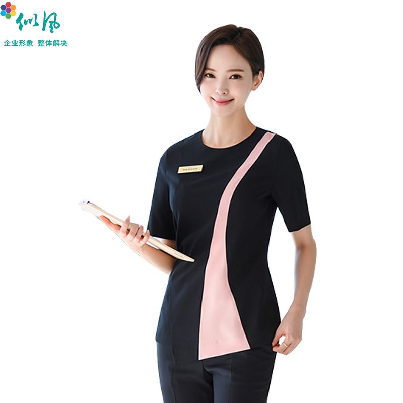 Korean-style beauty salon work clothes summer clothes Korean-style embroidery manicurist skin management work clothes pedicure technician clothes