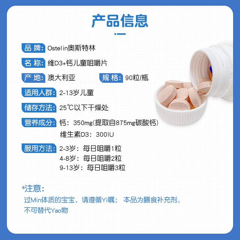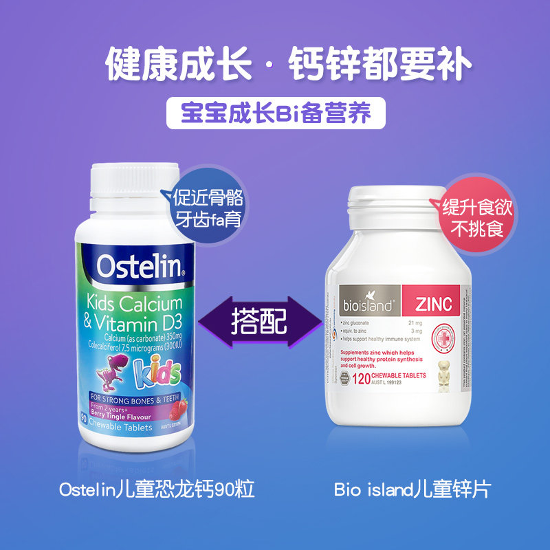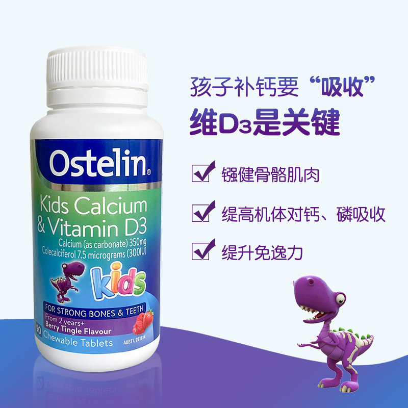 Australian Ostelin Kids Osterlin Kids Calcium Tablets Vitamin D Chewable Tablets 90 Small Dinosaur Supplement vd