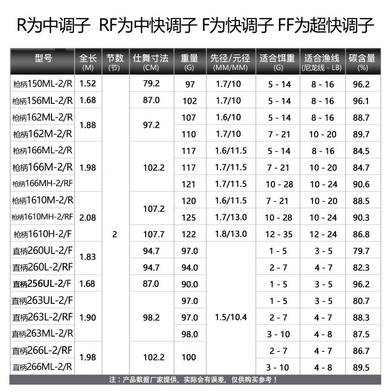 162M2 (M adjustment 1 88 meters)-R 162ML2 (ML adjustment 1 88 meters)-R 263UL2 (straight handle UL adjustment 1 90 meters)-F