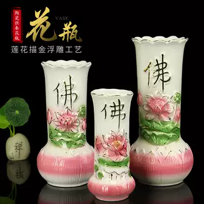 For Buddha vase relief ceramic lotus flower vase water purification bottle in front of Buddha flower arrangement for vase Buddha Hall home decoration