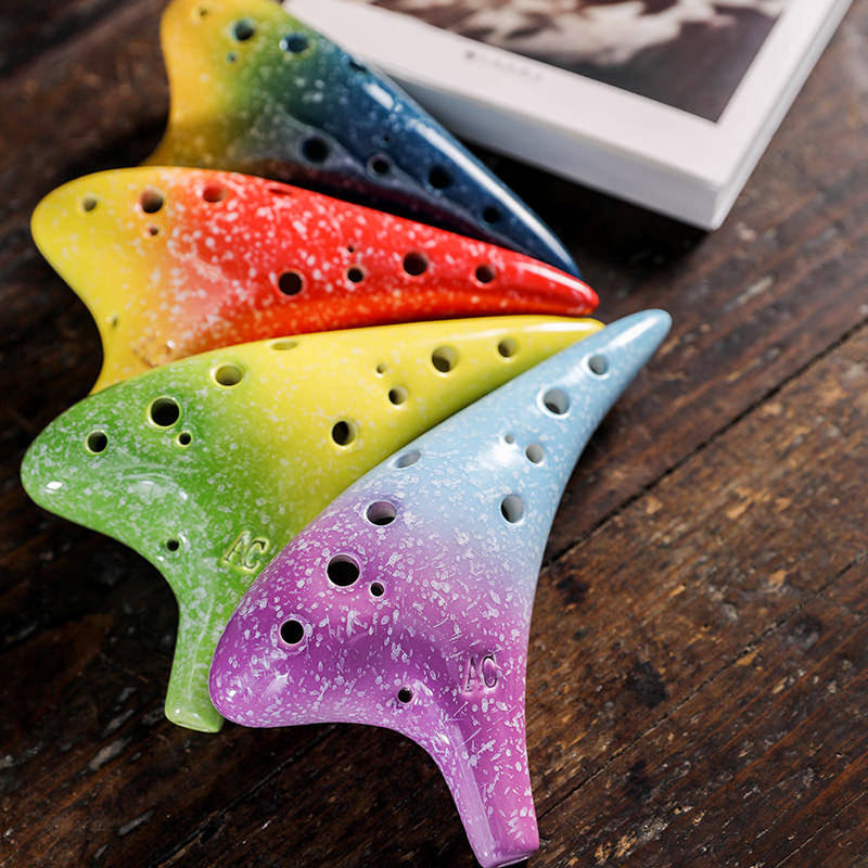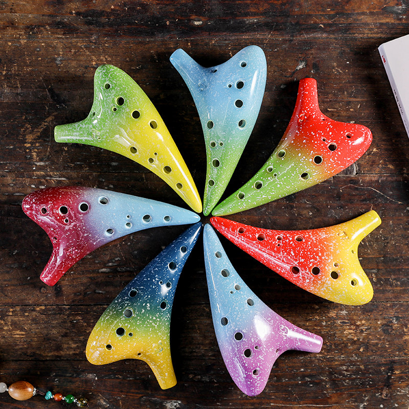 Purple blue yellow red yellow blue red blue hand-painted lotus orchid grass ink bamboo far mountain 6 holes color (color message) (reissue ocarina special shot) note color