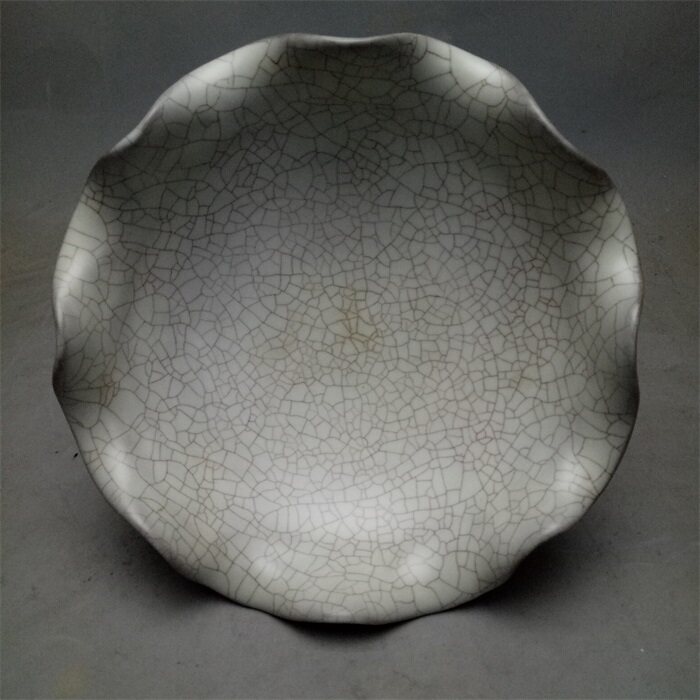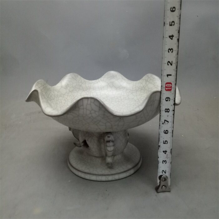 Song Ru kiln lotus leaf high-foot fruit plate antique antique old goods second-hand goods collection antique porcelain ornaments
