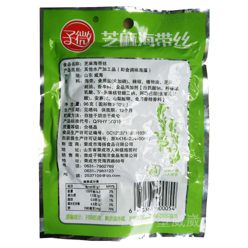 96g * 25 bags of micro ready-to-eat silk Sesame sesame flavor kelp Pickles original flavor Haiting