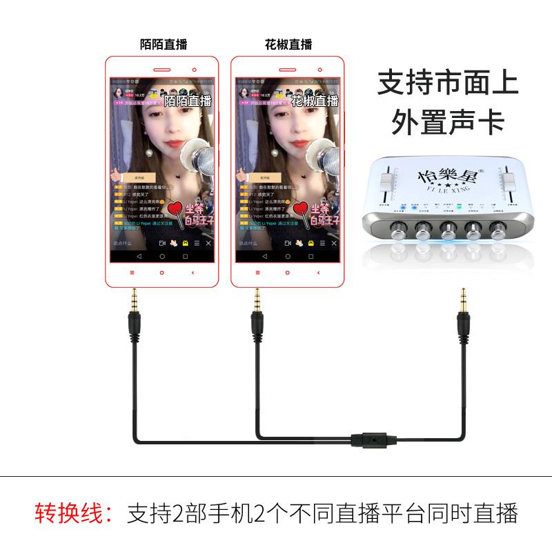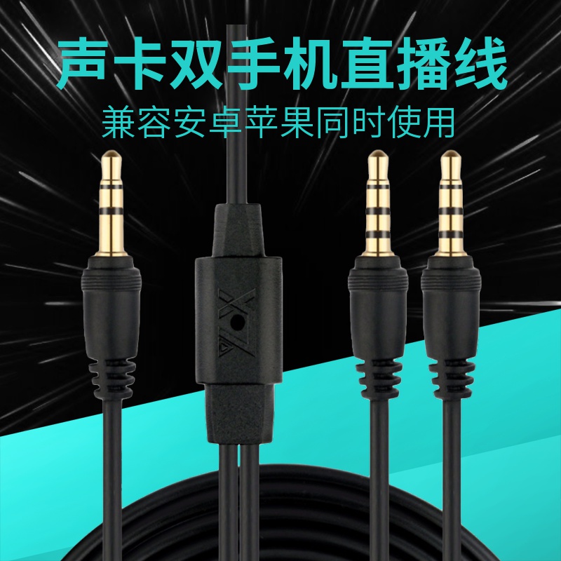 Dual mobile phone live broadcast one point two conversion line suitable for Senran V8 ten lights PM sound card dual platform adapter