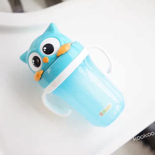 Korea edison cat owl child straw water cup children baby straw drink kettle cartoon 3D with water glass