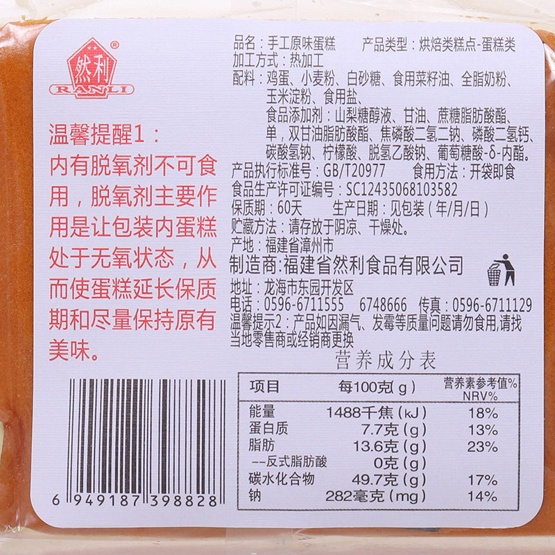 Ranli handmade cake 120gX32 pack whole box snacks wholesale breakfast bread egg cake steamed cake snacks