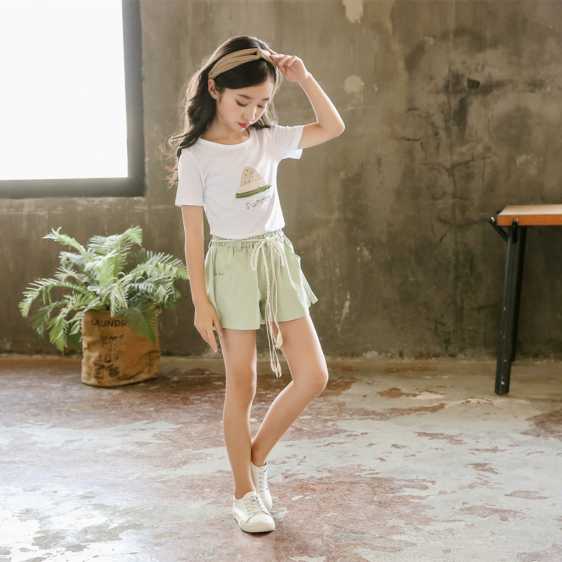 Girl Summer Dress 2018 New Female Baby Foreign Pie Two Sets Korean Version Great Boy Pure Cotton Trendy Suit 4 Year Old Tide Suit