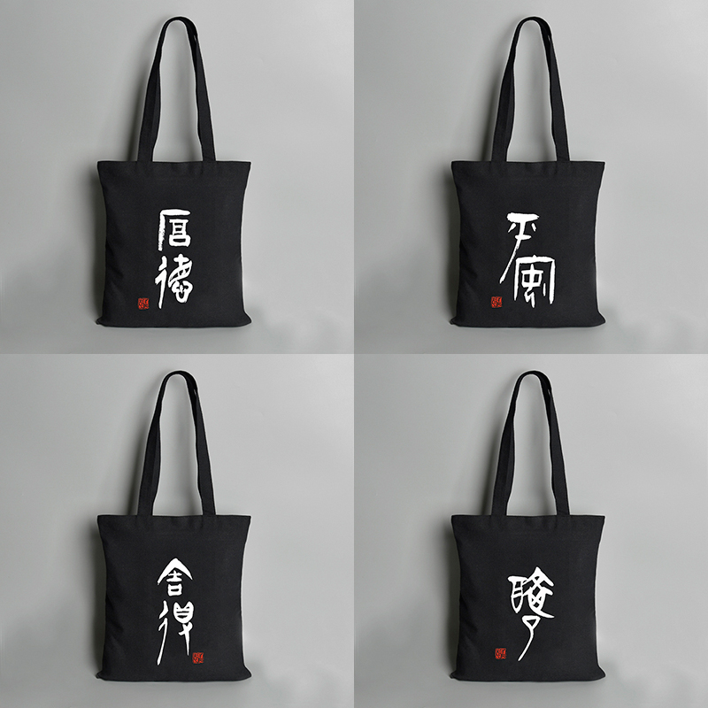 Canvas bag women's shoulder black literary and environmental protection leisure hand carry tote bag personality original student simple cloth bag