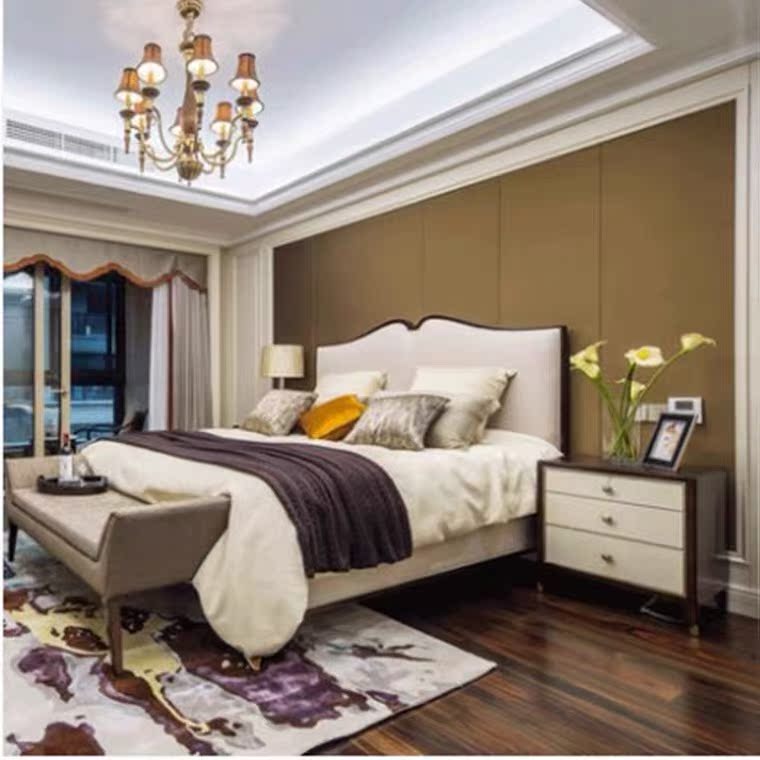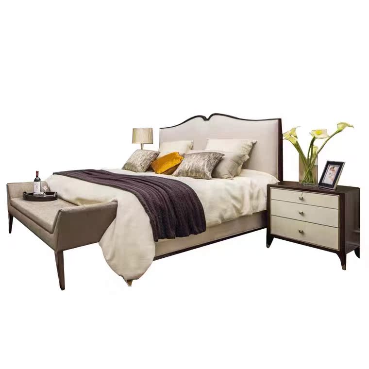 New Chinese simple fabric Mou Zen modern master bedroom single double 18 meters solid wood villa hotel furniture