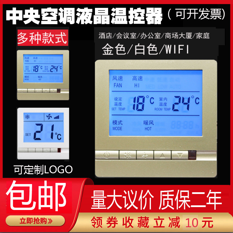 Central air conditioning black touch screen LCD thermostat fan panel three-speed switch wifi host linkage