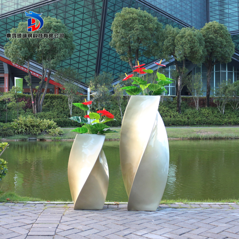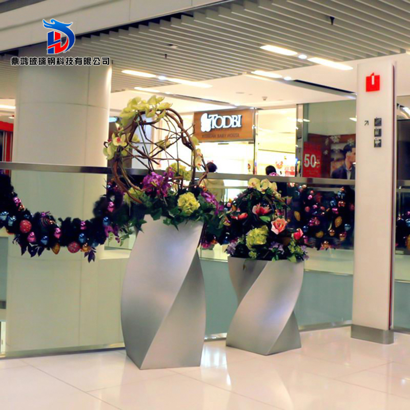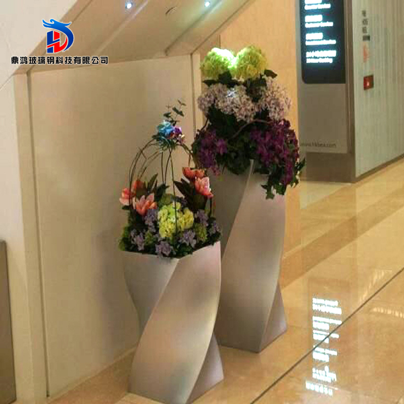 Glass fiber flower pot creative spiral square green plant shopping mall hotel decoration decoration special-shaped floor large vase