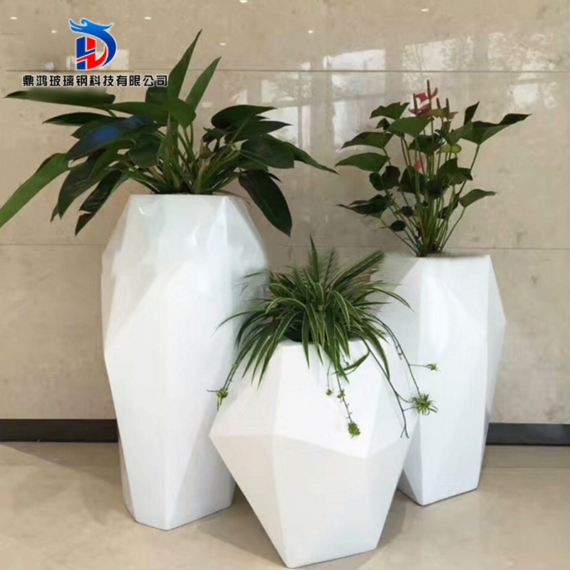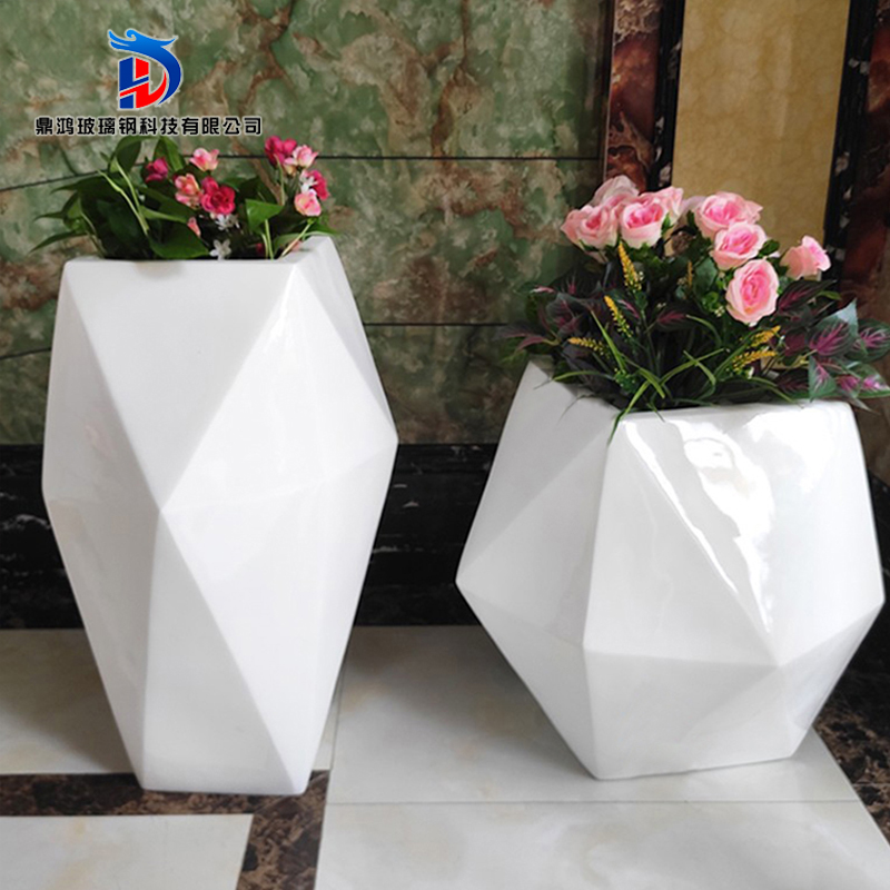 Glass Fiber Flowerpots Rhomboid Creative Floor Vases Hotel Mall Decoration Pendulum floral flower arrangements Geometric Floral Flowerpots