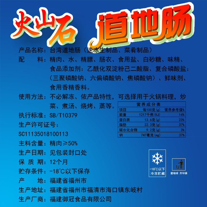 Treasure Taiwanese sausage, spicy barbecue sausage, volcanic stone roasted sausage, hot dog sausage, authentic authentic authentic sausage