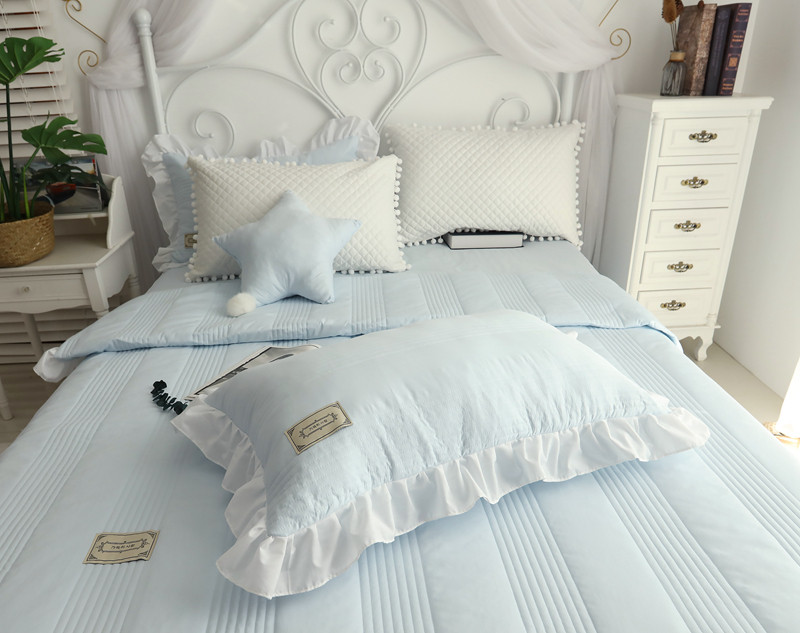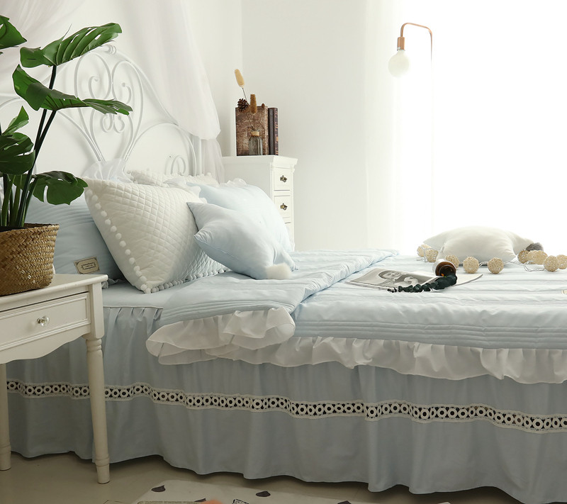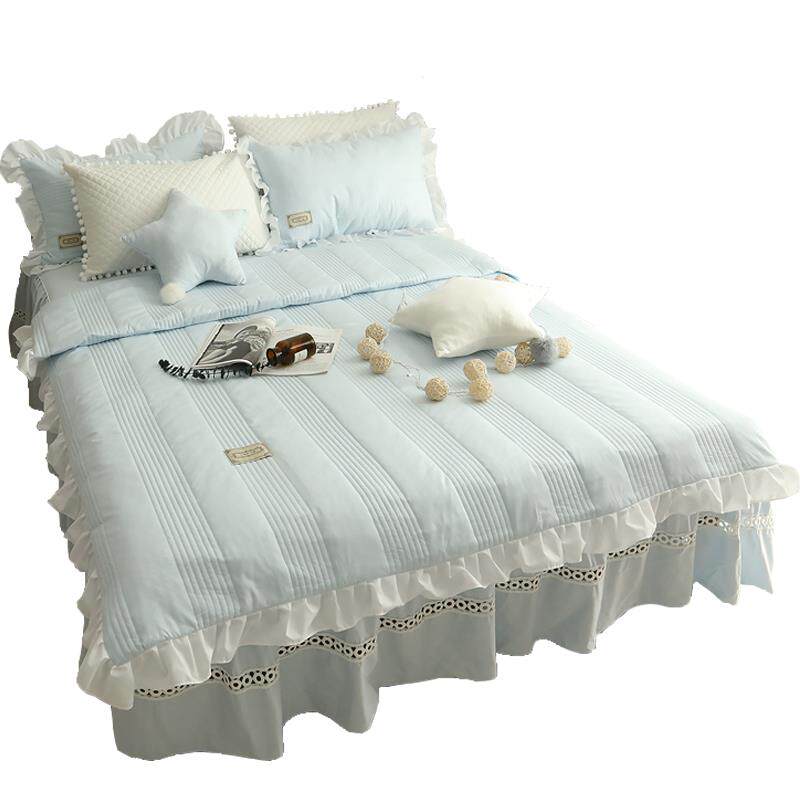 ins girl heart summer cool quilt four-piece set cotton skirt single quilt cover cotton net red style 1 8m princess style