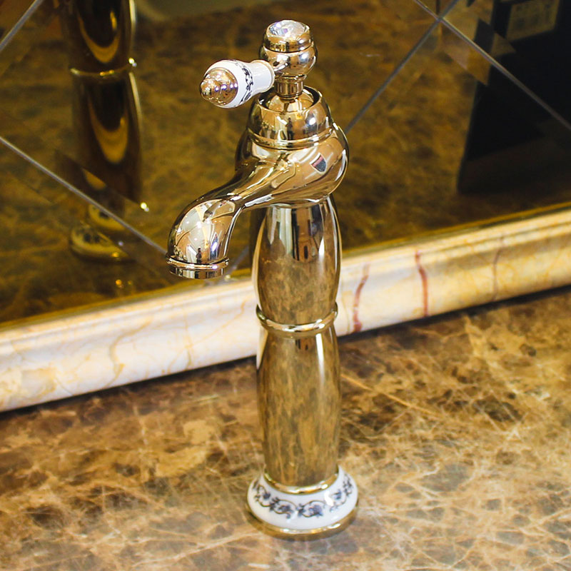 All-copper water cage head single-hole basin faucet European-style hot and cold faucet antique faucet table basin golden faucet