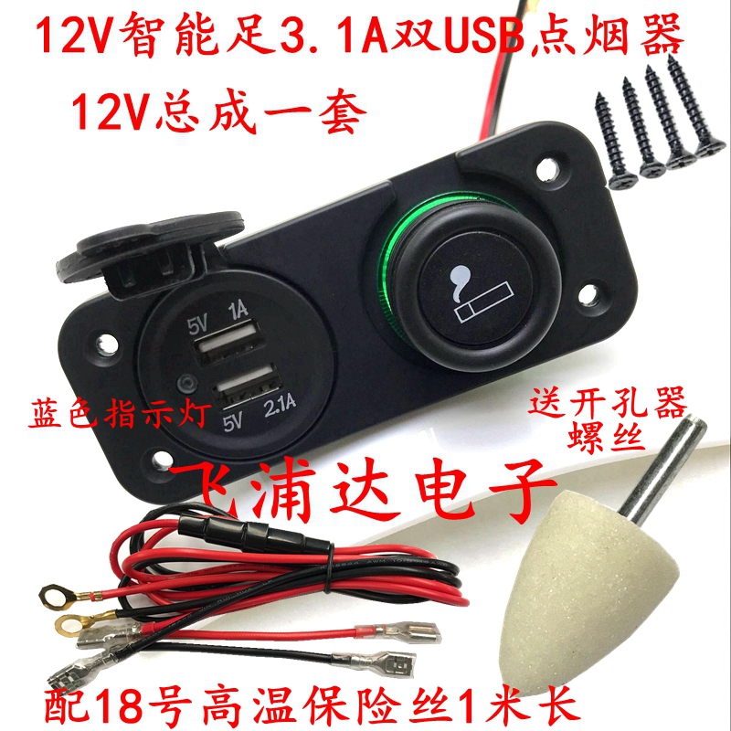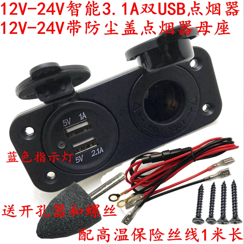 With waterproof cover double USB car charging with waterproof cover full copper point cigarette lighter mother seat double USB mother seat plus assembly double USB mother seat plus cigarette lighter mother seat