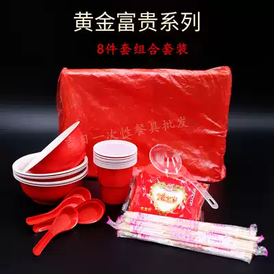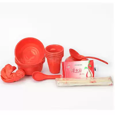Disposable bowl chopsticks set banquet thickened wedding banquet wedding festive red cutlery set