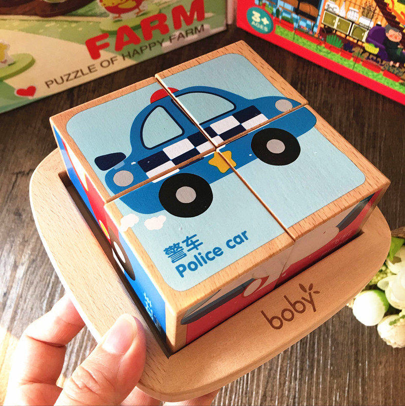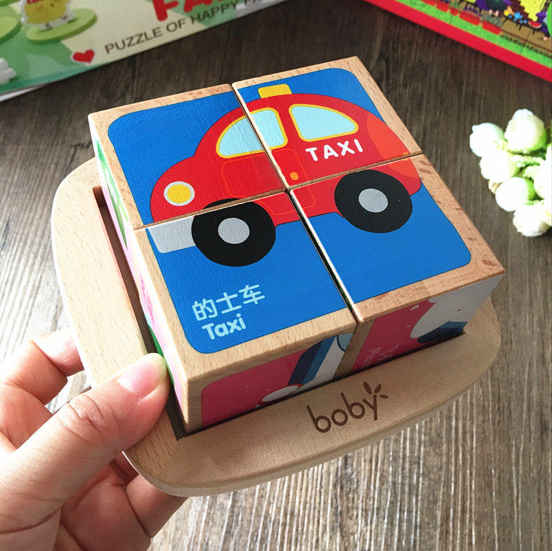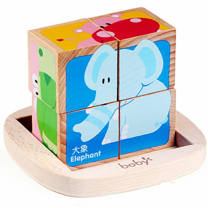 Boby young children's six-sided painting puzzle 3D three-dimensional puzzle building wood 4 pieces 1-3 years old baby early education educational toys