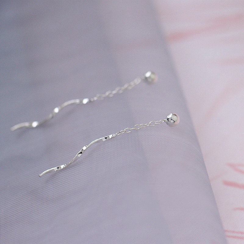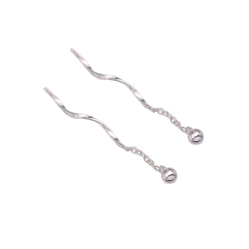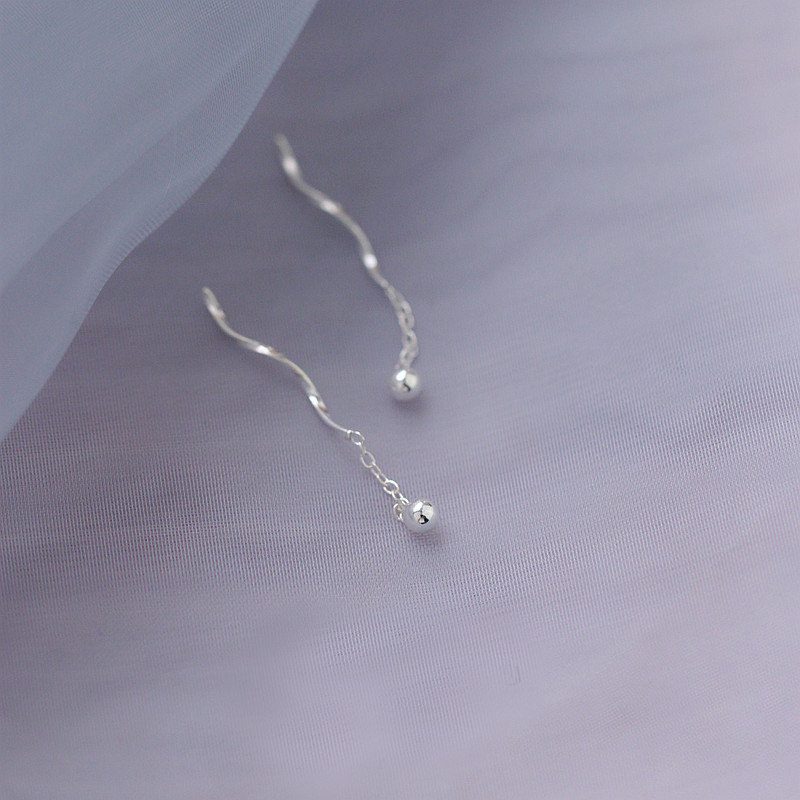 Small Z Excellent Xiaoxing 925 pure silver wave ear wire feminine Korea minimal ball silver bean ear crash ear chain