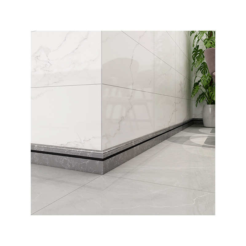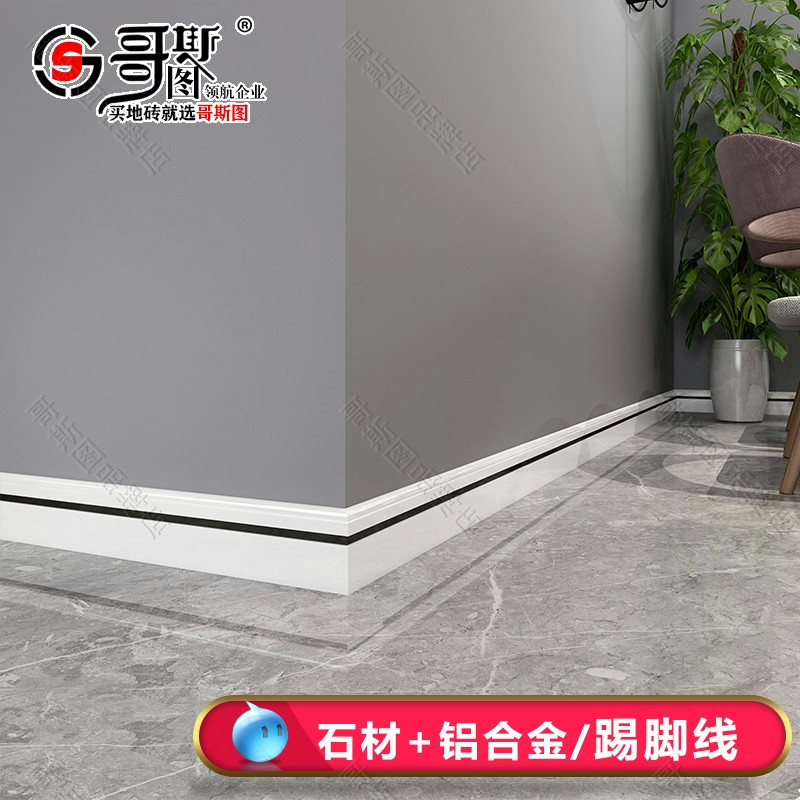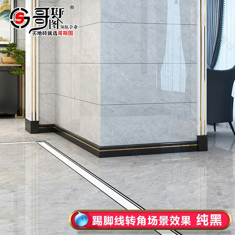 Marble floor footline light luxury tile living room floor aluminum alloy pure black and white skirting board stone foot close edge strip