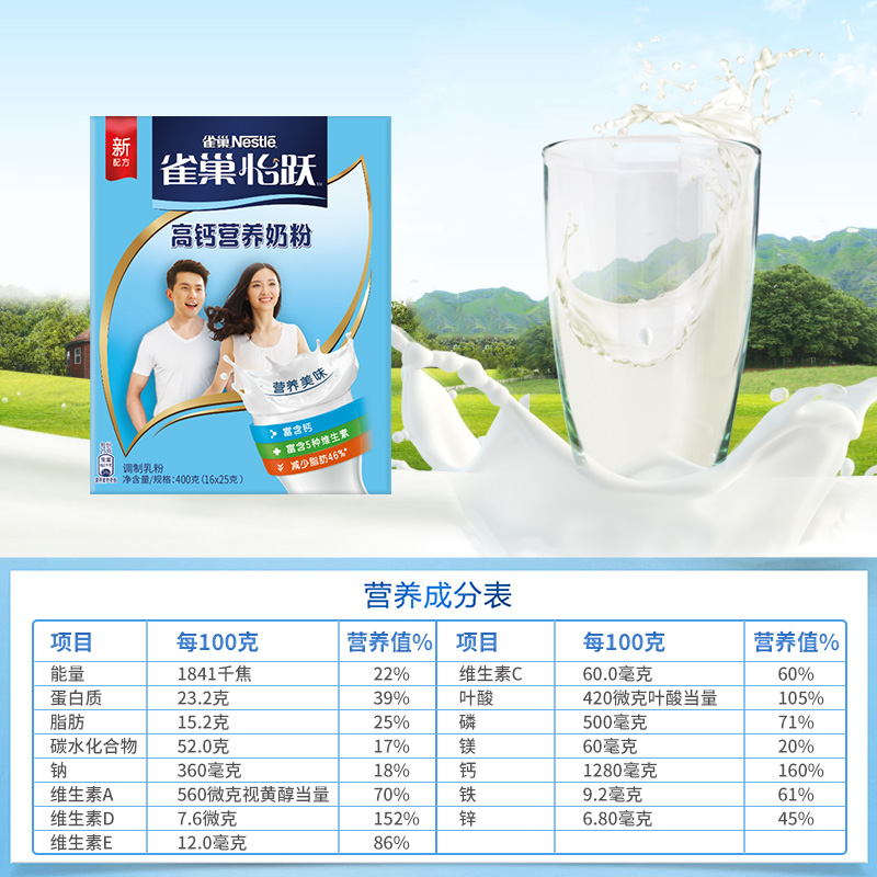 Nestlé high calcium nutritious milk powder 16 x25g bag with independent small strips to carry convenient