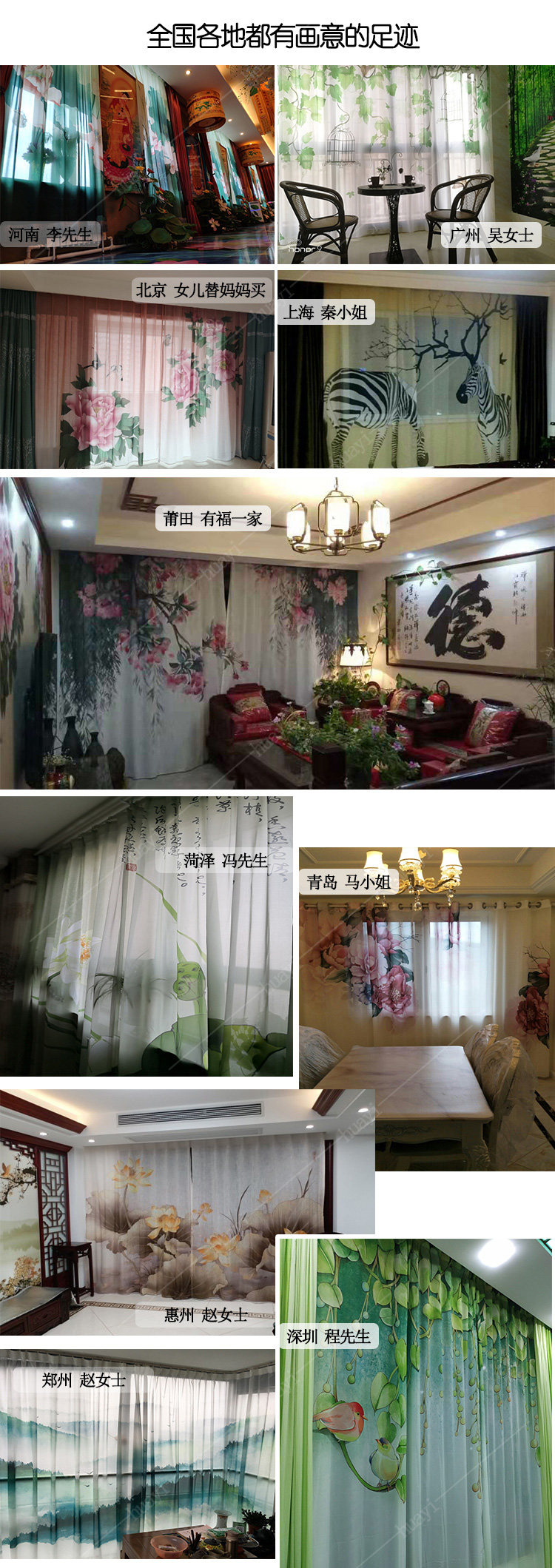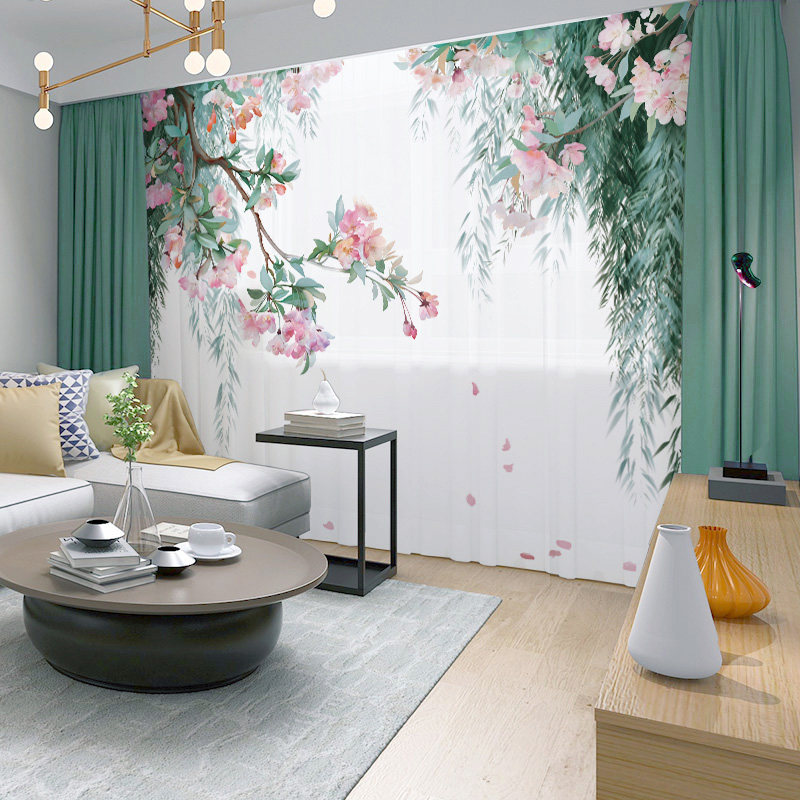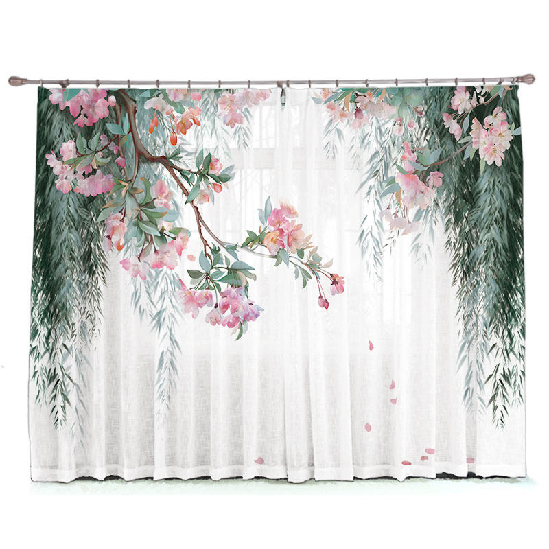 Chinese style Chinese style pastoral flowers modern minimalist bedroom balcony custom semi-shading gauze curtain semi-transparent light luxury