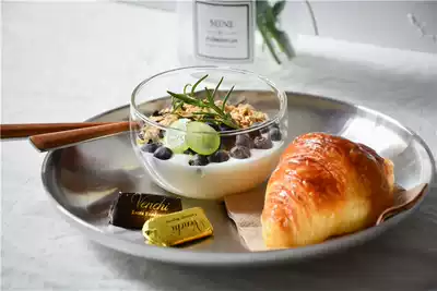 ins hot sale sanding stainless steel double-layer round plate Breakfast plate shooting props Nordic stainless steel plate