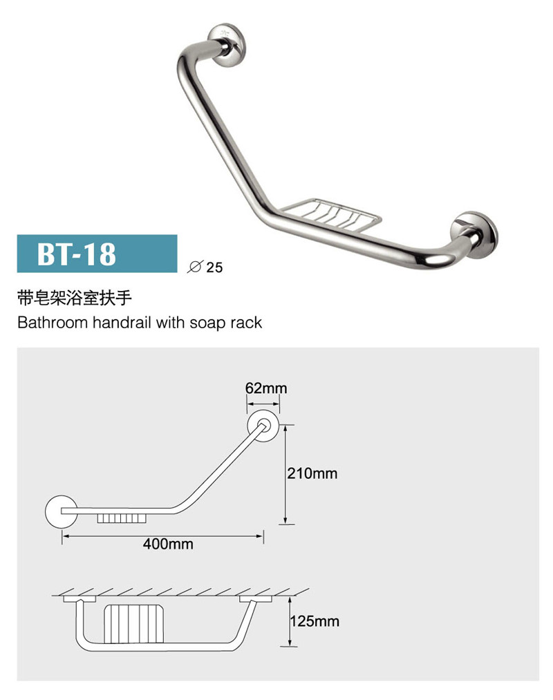 Golden Jet Bathroom bath Safe handle Home Elderly punching 304 Stainless Steel With Soap Rack Qu Armrest BT-18