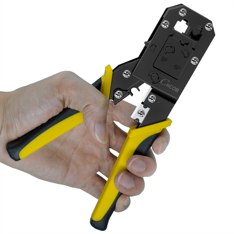 CNCOB network crystal head crimper six types of multi-functional mesh cable clamp 8p crystal head crimp plier 6p telephone line dual with stripping and cutting wire pliers original professional grade clamp crimp pliers
