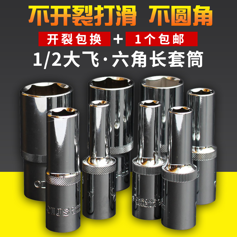1 2 Extended sleeve Big fly outer hexagon thin sleeve with fast plate glove tube ultra-thin sleeve with sub-sleeve head 8mm