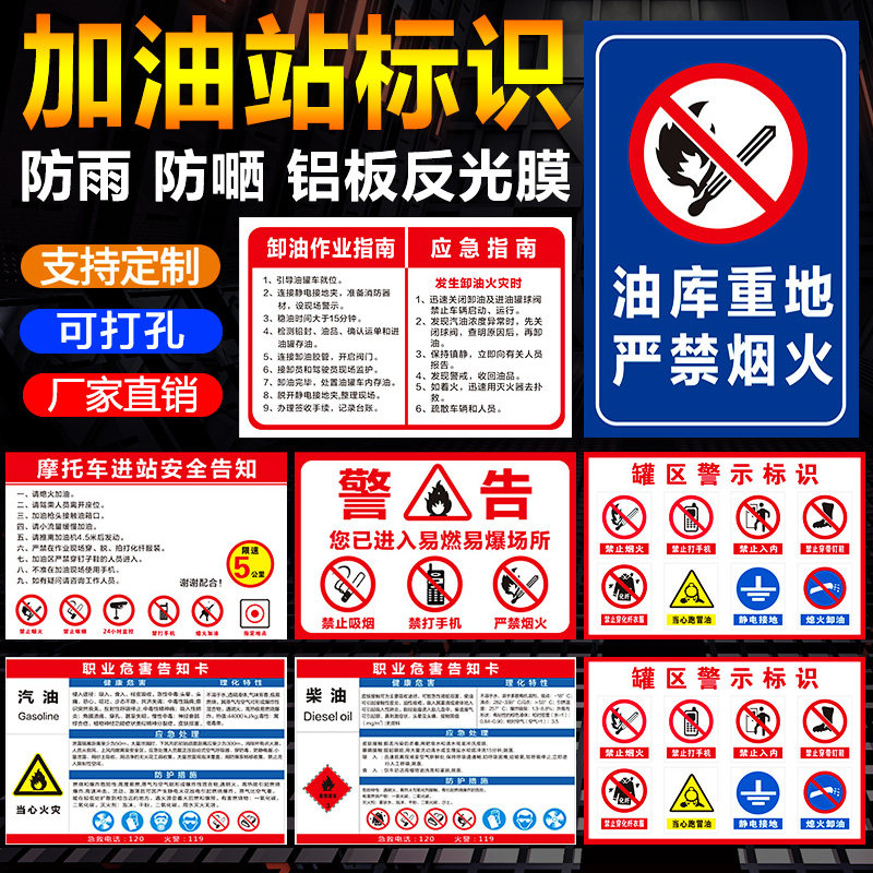 Gas station ID card strictly forbidden to smoke fire safety warning signs Oil Products Identification Card Forbidden Smoking Fireworks Prompt Card Safety Action Protocol Officer Post Operation Protocol Locomotive of Locomotive Refuelling