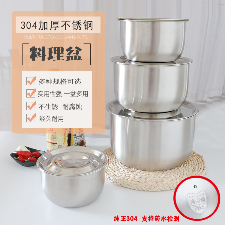 304 thickened with lid stainless steel basin round home with oil basin kitchen seasoning and face basin cuisine pan oil tank-Taobao
