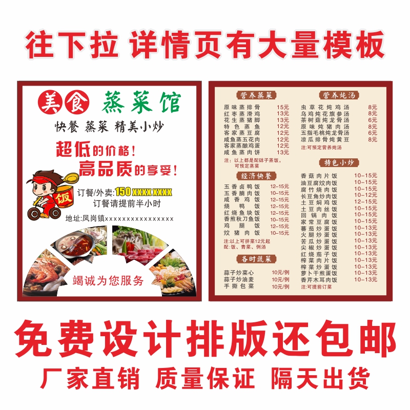 Catering milk tea shop order card custom-made takeaway card business card creative design half-fold fast food delivery menu card