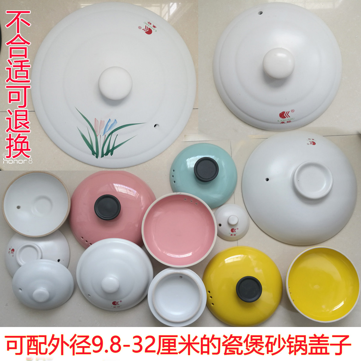 Ceramic casserole lid single lid universal accessories traditional Chinese medicine pot lid household stew pot yellow orange porcelain pot stew pot casserole lid