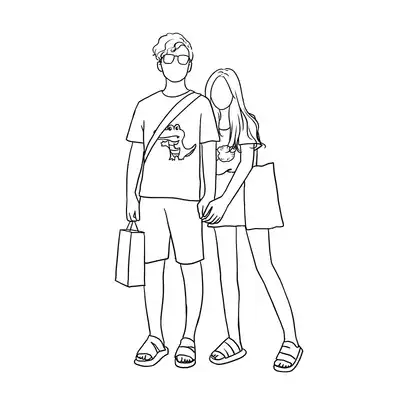 Hand-painted Avatar Q version couple black and white line stick figure custom cartoon character real photo turn hand-painted tattoo
