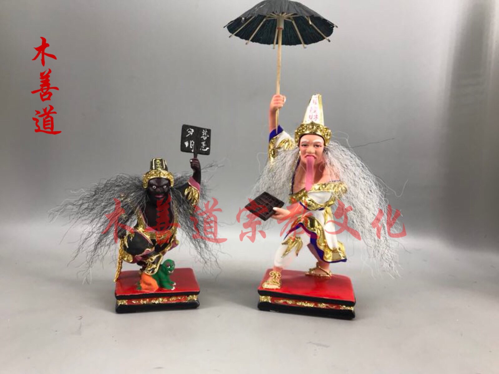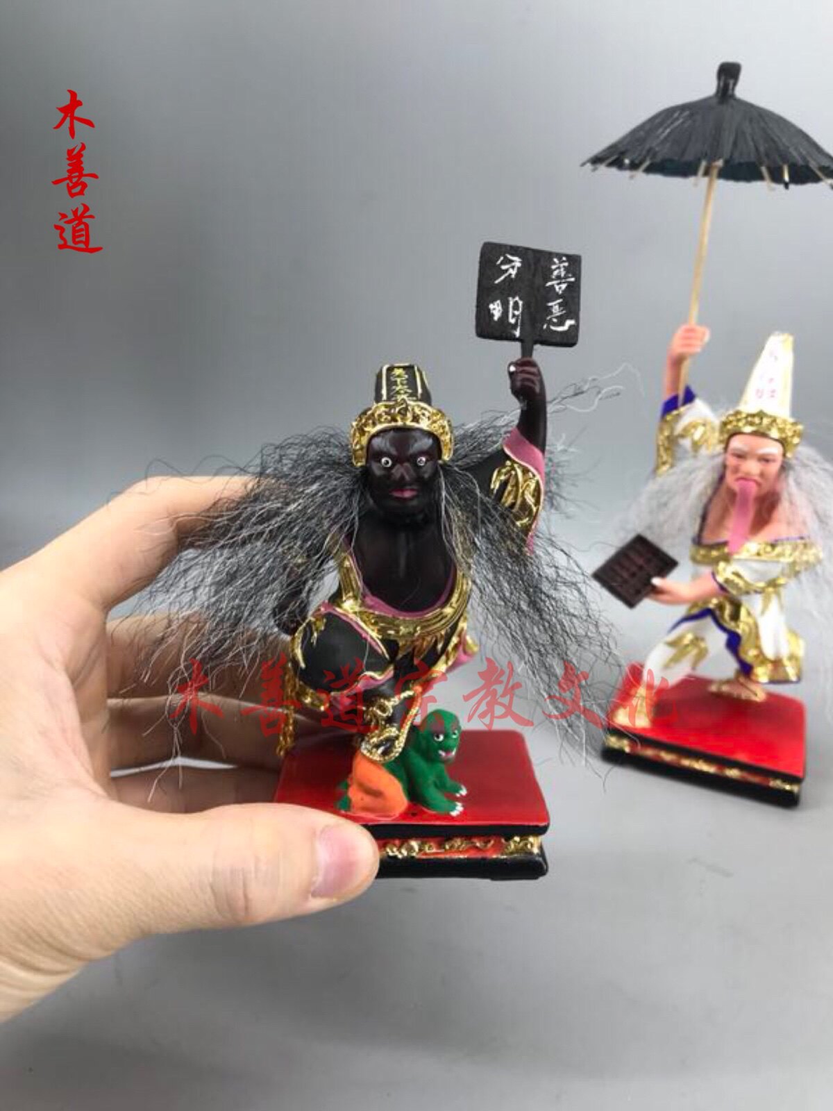 Wood carving black and white capricious Big Two-lord Master's Eight-lord Changmu lacquer line engraving handmade 6 inches 4 inches
