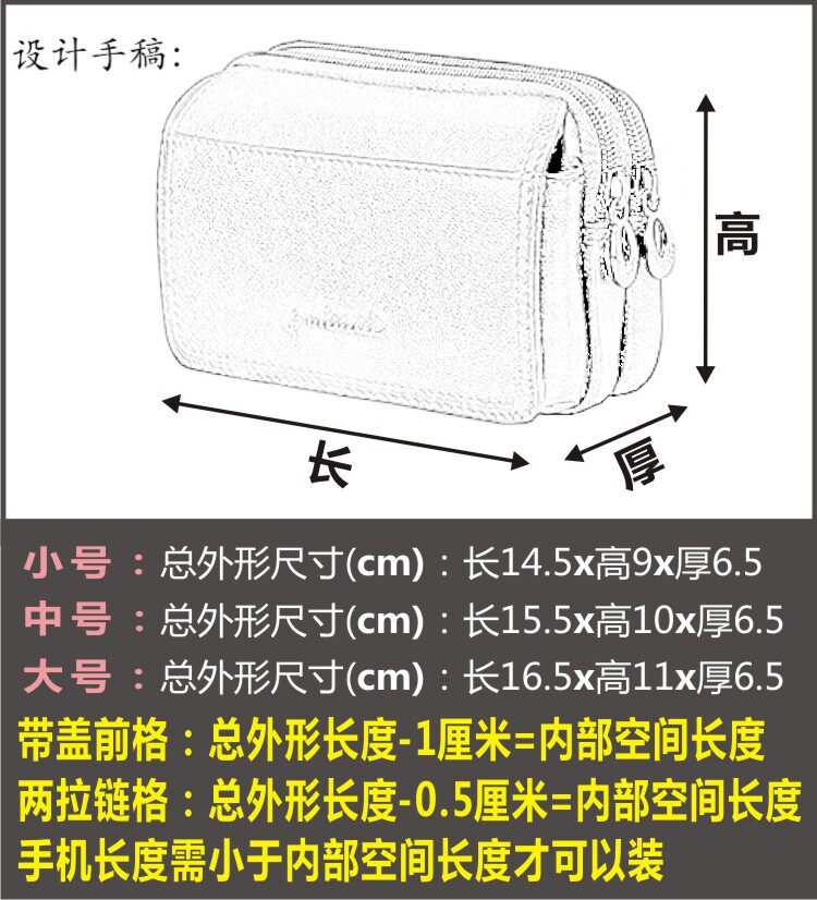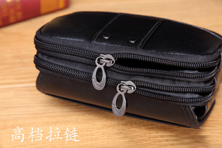 Mobile phone pockets 4 5 inch 5 0 inch 5 5 inch men's genuine leather multi-functional horizontal wear belt multi-layer small pocket