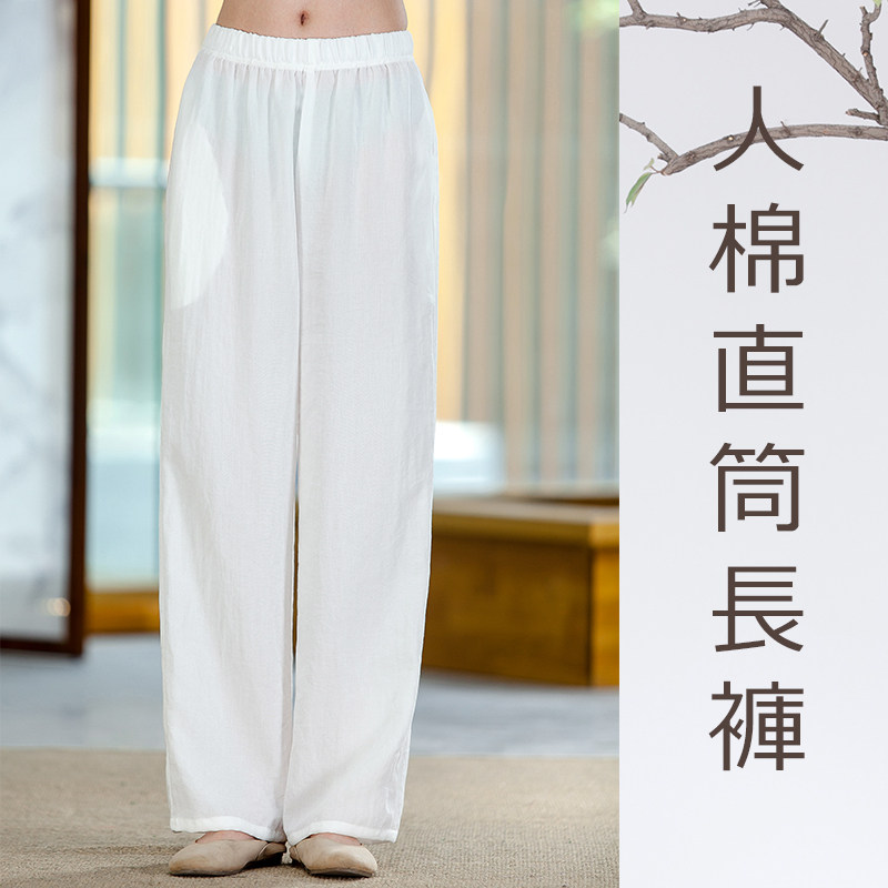 Spring and summer thin breathable tea pants Cotton and hemp thin hanging pants Elastic waist versatile casual pants straight pants