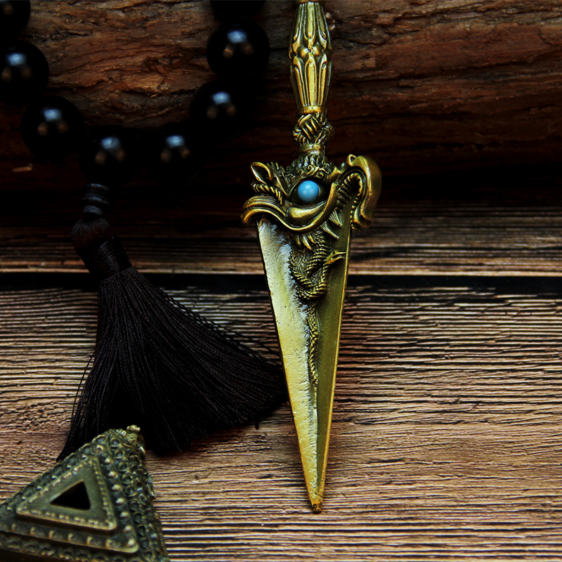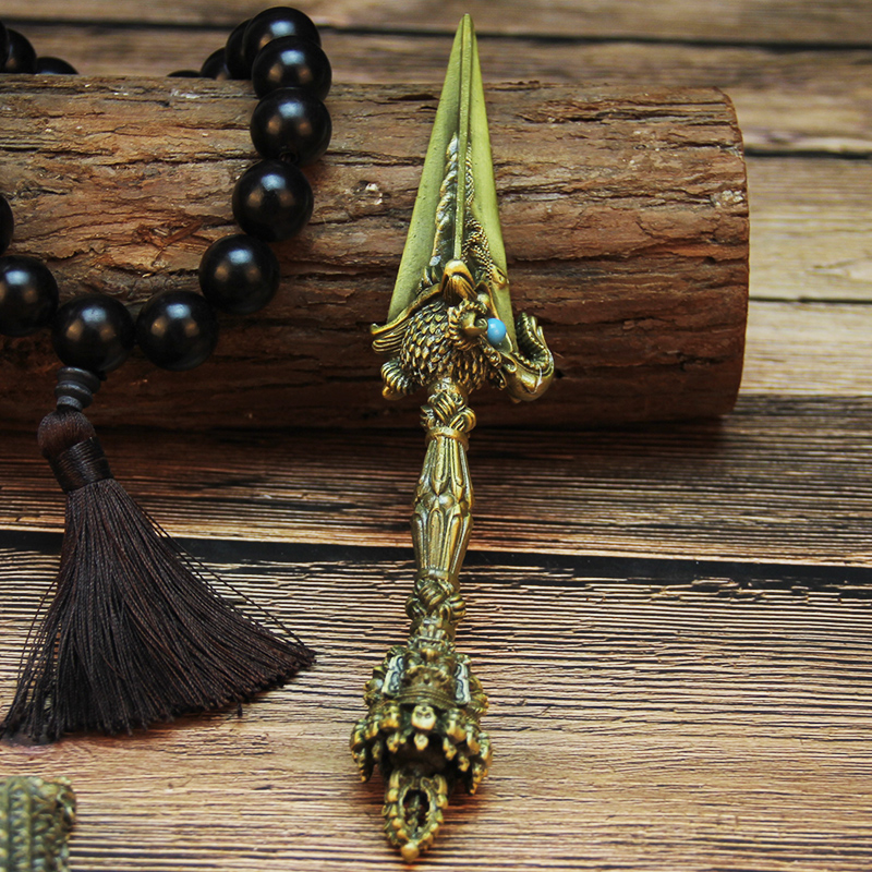 Tantric ritual vessel Tibetan Buddhist accessory Nepalese copper Pupa vajra pestle pendant Vajrapani descending wand cone trumpet