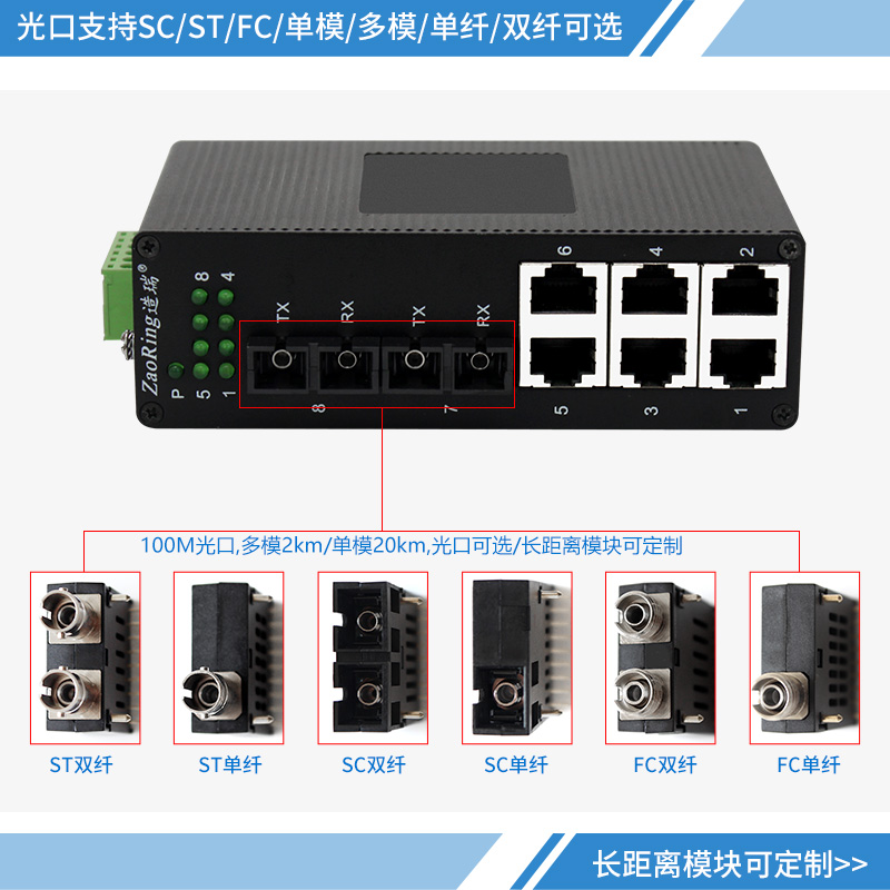 Industrial grade switch 8 ports of guide card gauge 100 trillion 2 light 6 Electric B too network single multi-mode double fiber long distance fiber