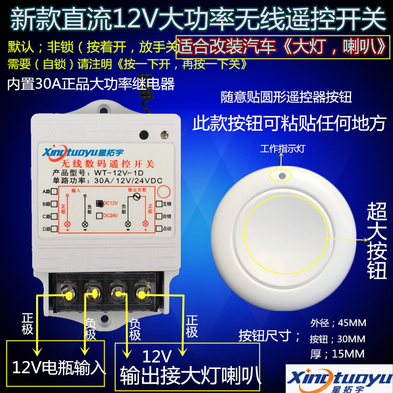 Star Tinto UDC 12V Single-way High power wireless remote control switch horn LED Living room lamp casual sticker with transmitter