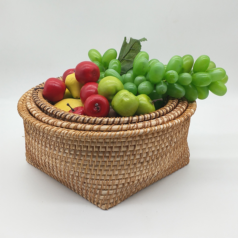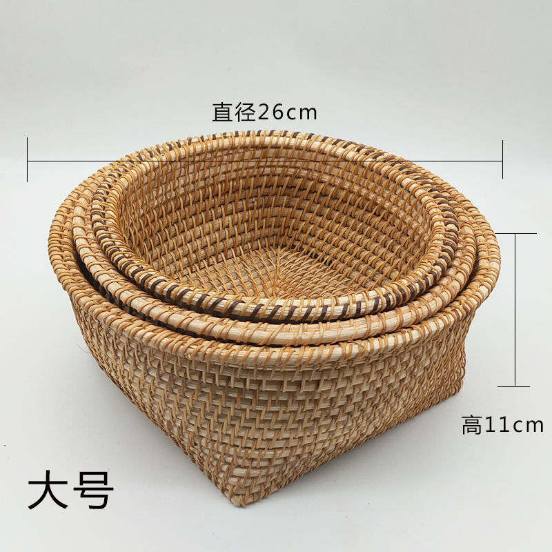 Vietnam Fuji Collects Basket Fruit Snacks Plate Living Room Desktop Weaver Debris Box Large Simple Circular Three Pieces